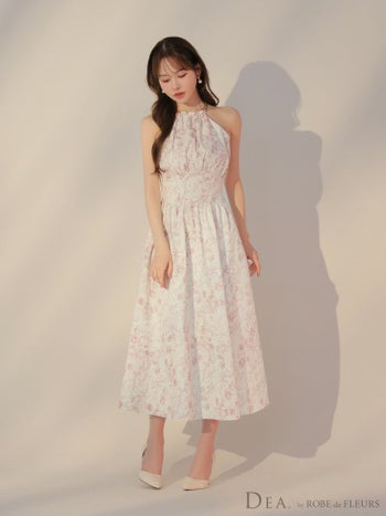 XS~Lあり!春らしいデザインの一着★ 予約商品【2月下旬入荷予定】【DEA.by ROBE de FLEURS/ディア】花柄 エレガント ホルターネック Aラインロングドレス(DE3783)