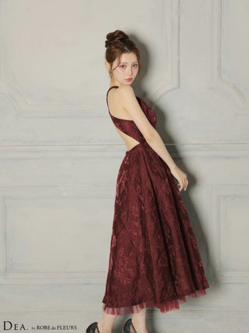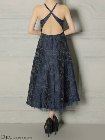 3. 【DEA.by ROBE de FLEURS/ディア】ホルターネック ウエストベルト バックオープン ラメジャガード チュール エレガント Aラインロングドレス(DE4332)