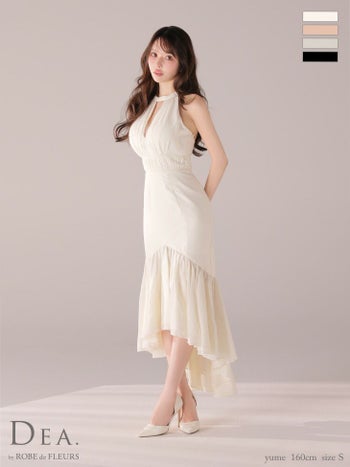 キャバドレス DEA.by ROBE de FLEURS ディア バストカット ウエストギャザー バックオープン オーガンジー サテン エレガント ホルターネック リボン Aラインロングドレス
