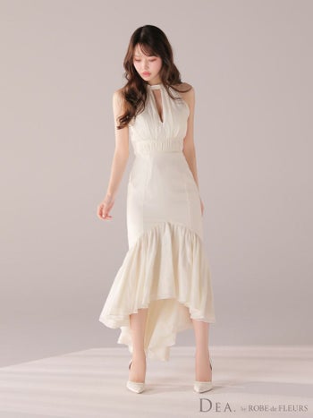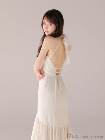 4. 【DEA.by ROBE de FLEURS/ディア】バストカット ウエストギャザー バックオープン オーガンジー サテン エレガント ホルターネック リボン Aラインロングドレス(DE4611)