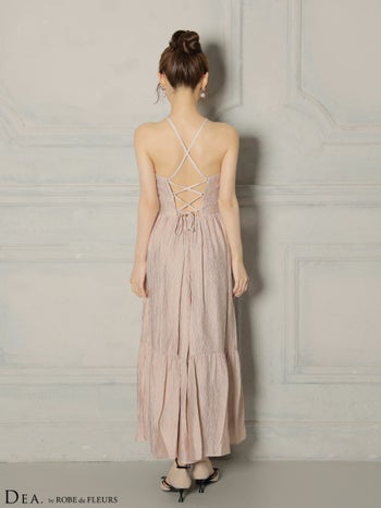 キャバドレス DEA. ROBE de FLEURS ディア ローブドフルール サテン ティアード シンプル ホルターネック Aラインロングドレス