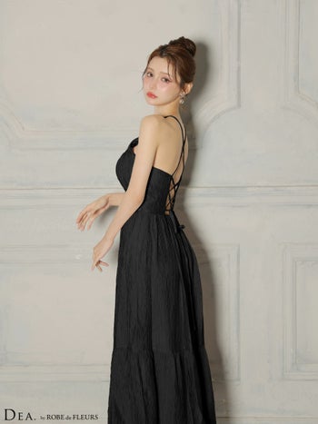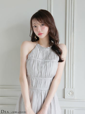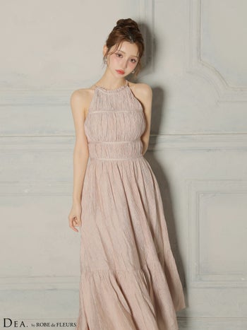 キャバドレス DEA. ROBE de FLEURS ディア ローブドフルール ホルターネック サテン ティアード シンプル Aラインロングドレス