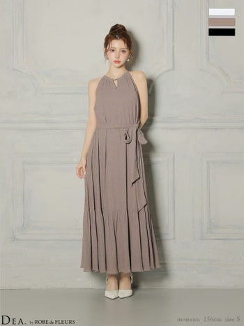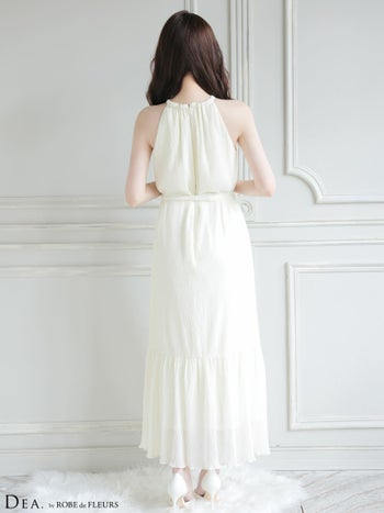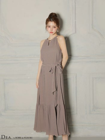 3. 【DEA.by ROBE de FLEURS/ディア】エレガント ホルターネック Vネック ウエストリボン プリーツシフォン Aラインロングドレス(DE4626)