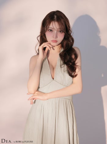 キャバドレス DEA. ROBE de FLEURS ディア ローブドフルール ホルターネック プリーツ シフォン ネックリボン Vネック フレアロングドレス