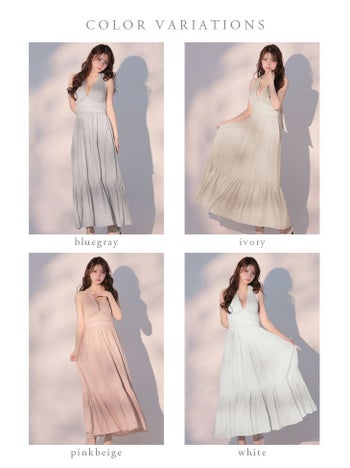 4. 【DEA.by ROBE de FLEURS/ディア】ネックリボン Vネック ホルターネック プリーツ シフォン フレアロングドレス (DE4659)