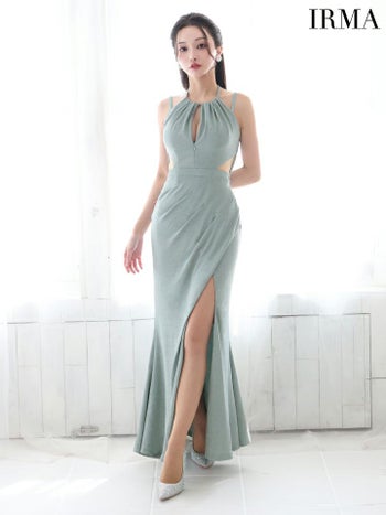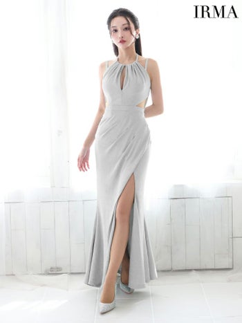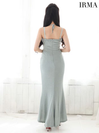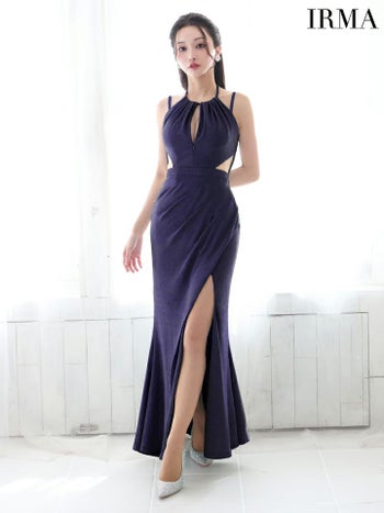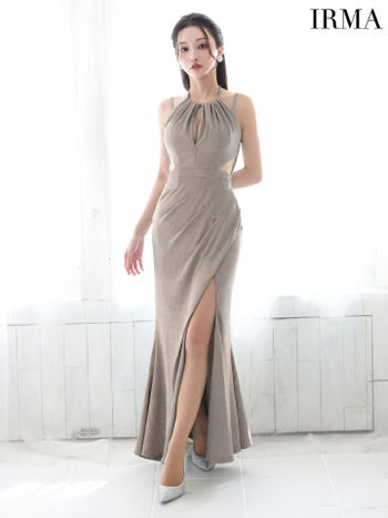 4. 【IRMA/イルマ】セクシー オープンバスト ジップデザイン ホルターネック キャミソール ウエストカット スリット ラメニット タイトロングドレス (55026)