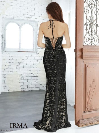 4. 【IRMA/イルマ】ラメ入り フラワー刺繍 ホルターネック タイトロングドレス[ブラック]