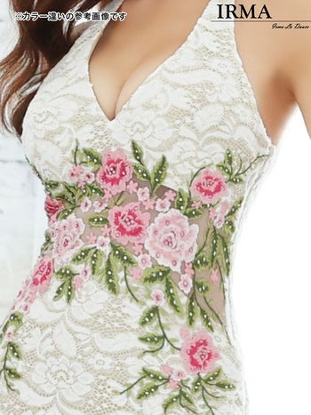 気品に満ちた女性へ導くキャバドレス♪ 【IRMA/イルマ】ラメ入り フラワー刺繍 ホルターネック タイトロングドレス[ブラック]