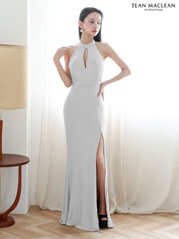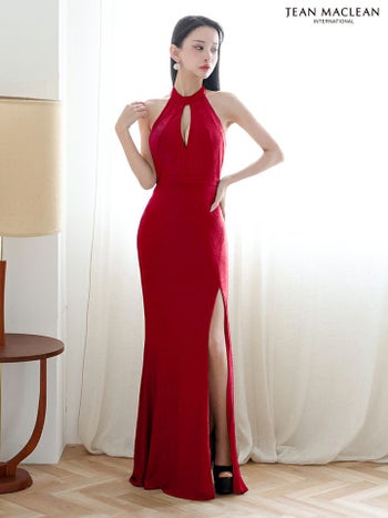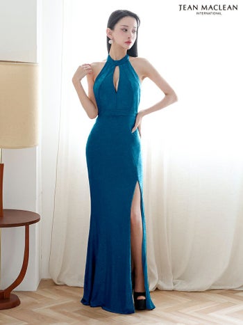 3. 【JEANMACLEAN/ジャンマクレーン】スリット バストカット タック ワンカラー ホルターネック タイトロングドレス(51903)