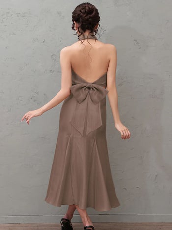 3. 【Veautt/ヴュート】バックオープン ワンカラー ホルターネック バックリボン クロスデザイン マーメイドロングドレス (VT082606)