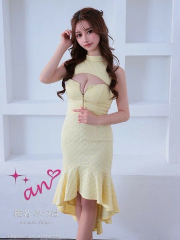 キャバドレス ロングテールドレス an アン ジップデザイン マーメイド カットデザイン チュールスリーブ リボン ホルターネック