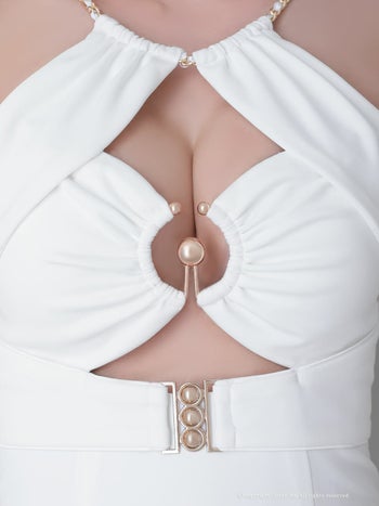 ホルターネック バストカット チェーン ビジュー ウエストベルト タイトミニドレスの詳細画像2
