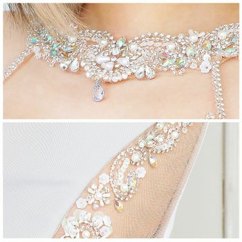 XSあり!煌めくビジューで高級感☆ 【Angel R/エンジェルアール】デコルテ ウエストビジュー ワンカラー ホルターネック タイトミニドレス (AR21245)