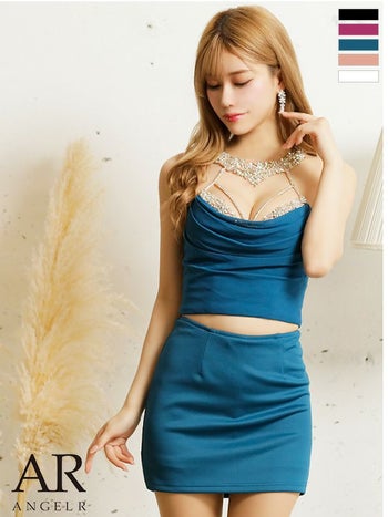 XSあり!高級感溢れる2ピースタイトミニ☆ SALE【Angel R/エンジェルアール】スタイルアップ セットアップ デコルテビジュー バストドレープ マイクロ タイトミニドレス (AR23223)