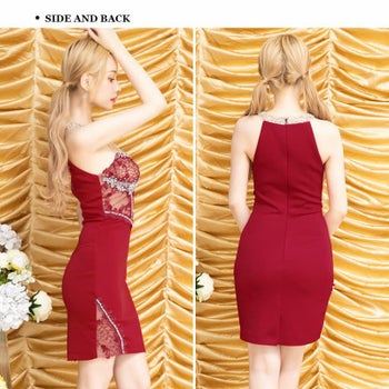 3. 【Angel R/エンジェルアール】セクシー オープンバスト ホルターネック ビジュー シースルーレース タイトミニドレス (AR24341)