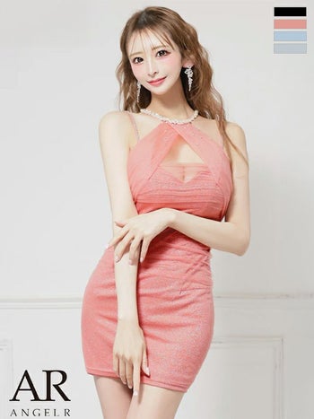 キャバドレス Angel R エンジェルアール ホルターネック バストカット チュール ビジュー パール ラメ フェミニン タイトミニドレス