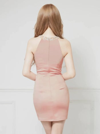 4. 【Angel R/エンジェルアール】ビジュー ホルターネック シフォンドレープ パールチェーン タイトミニドレス (AR25230)