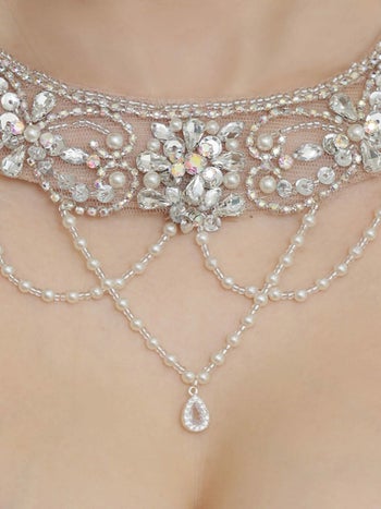 3. 【Angel R/エンジェルアール】セクシー ホルターネック パールチェーン Vカット くびれ透け ビジュー メッシュ ラメ タイトミニドレス (AR25248)