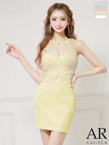 キャバドレス Angel R エンジェルアール フラワーレース メッシュ パール ビジュー ホルターネック タイトミニドレス