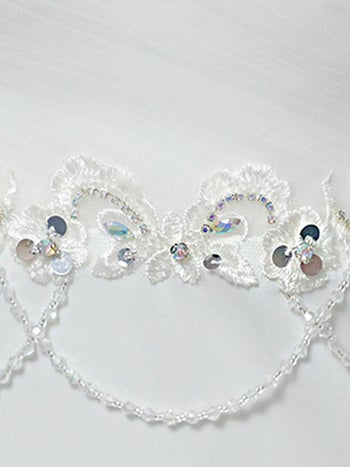 3. 【Angel R/エンジェルアール】フラワーレース メッシュ パール ビジュー ホルターネック タイトミニドレス (AR25331)