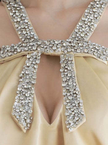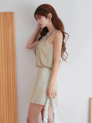 3. 【Angel R/エンジェルアール】ネックビジュー バストカット ホルターネック サテン タイトミニドレス (AR25349)