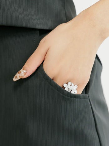 4. 【Angel R/エンジェルアール】ホルターネック リボン ビジュー メッシュ オープンバスト ポケット セットアップ フレアミニドレス (AR25355)