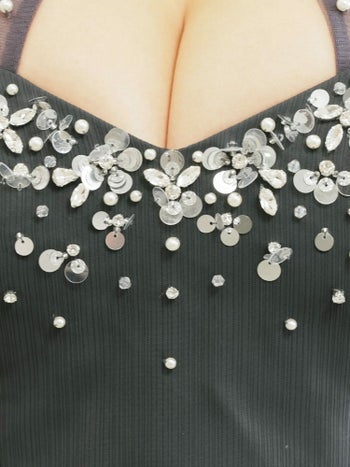 4. 【Angel R/エンジェルアール】リボン ビジュー メッシュ オープンバスト ポケット セットアップ ホルターネック フレアミニドレス (AR25355)