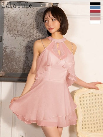 XSあり!乙女心をくすぐるフェミニンスタイル♡ 【Angel R/エンジェルアール】2way ビジュー キャミソール ラメ ホルターネック フレアミニドレス (AR25837)