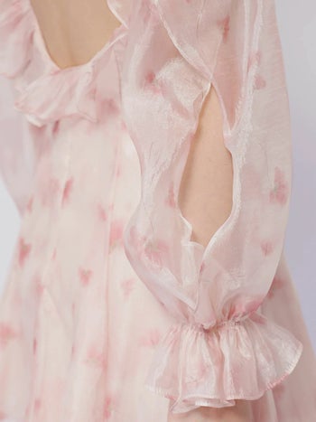 3. 【Angel R/エンジェルアール】フリル 肩あき 長袖 バックオープン シフォン フラワープリント ホルターネック フレアミニドレス (AR26801)