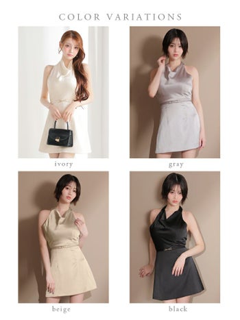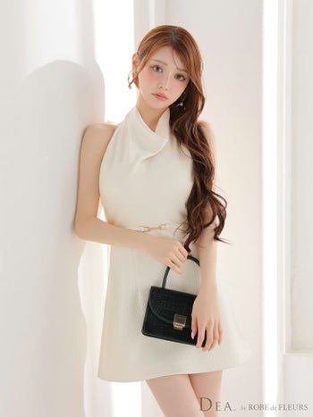 4. 予約商品【2月上旬入荷予定】【DEA.by ROBE de FLEURS/ディア】サテン ドレープ ホルターネック ウエストベルト フレアミニドレス (DE3376)