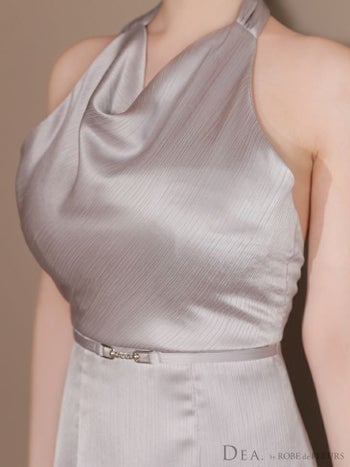 キャバドレス DEA. ROBE de FLEURS ディア ローブドフルール サテン ドレープ ホルターネック ウエストベルト フレアミニドレス