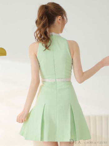 4. SALE【DEA.by ROBE de FLEURS/ディア】フェイクポケット ベルト切り替え スプリングツイード バストカット アメリカンスリーブ フレアミニドレス(DE3519)