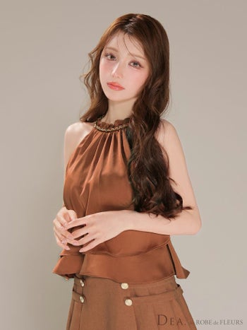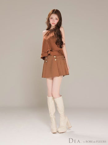 3. 【DEA.by ROBE de FLEURS/ディア】クラシカル フリル シフォン セットアップ ホルターネック プリーツスカート フレアミニドレス (DE4216)