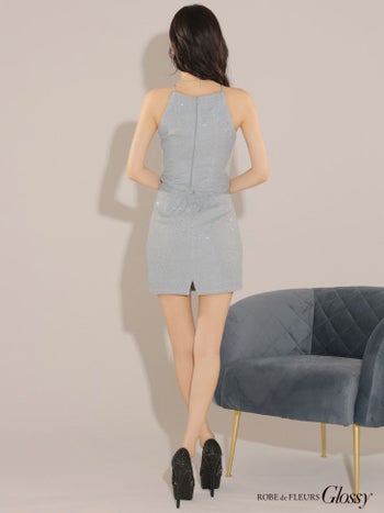 4. 【Glossy by ROBE de FLEURS/グロッシー】スパンコールラメニット オープンバスト ホルターネック セクシー セットアップ タイトミニドレス (GL3186)