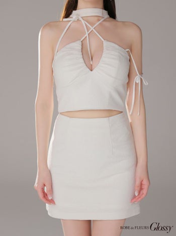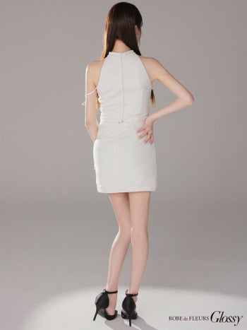 4. 【Glossy by ROBE de FLEURS/グロッシー】オープンバスト ホルターネック アシンメトリー リボン セットアップ セクシー タイトミニドレス (GL3438)