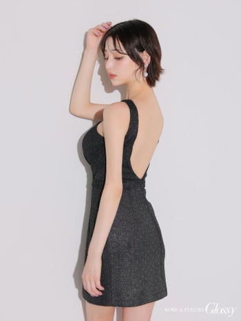 3. 【Glossy by ROBE de FLEURS/グロッシー】クロスデザイン ストーン ホルターネック ラメニット セクシー タイトミニドレス (GL3941)