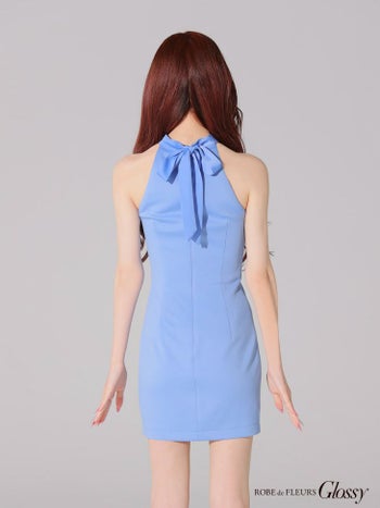 3. 【Glossy by ROBE de FLEURS/グロッシー】2way チョーカー風 ホルターネック ジップデザイン ワンカラー タイトミニドレス(GL4108)