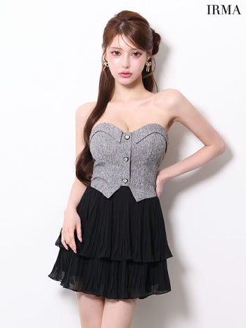 キャバドレス IRMA イルマ ホルターネック バストリボン セットアップ フリルスカート ガーリー ツイード シフォン フレアミニドレス