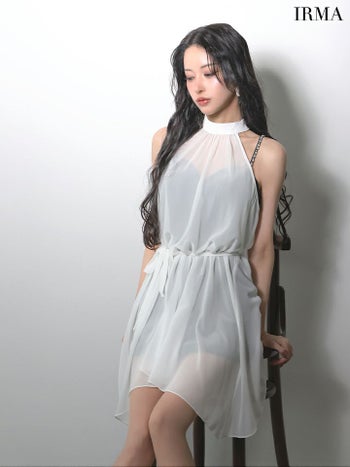 3. 【IRMA/イルマ】セットアップ 2way キャミソール シフォン ウエストリボン ホルターネック ビジュー フレアミニドレス (61013)