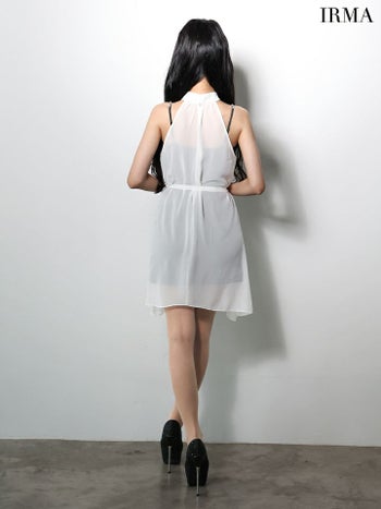 4. 【IRMA/イルマ】セットアップ 2way キャミソール シフォン ウエストリボン ホルターネック ビジュー フレアミニドレス (61013)