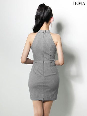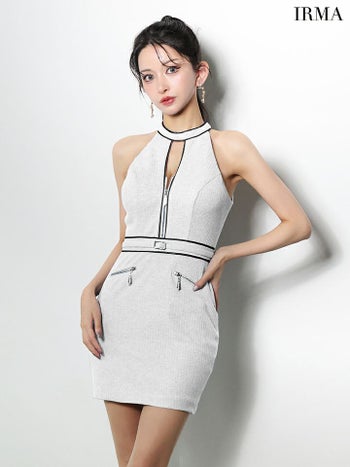 キャバドレス IRMA イルマ ホルターネック パイピング ウエストベルト シンプル ジップデザイン ラメ ニット タイトミニドレス