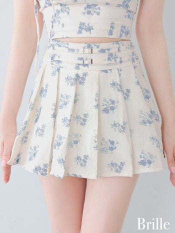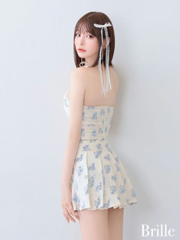 3. 【Brille/ブリエ】花柄 ハートカット ホルターネック セットアップ リボン プリーツスカート フレアミニドレス(brille3788)