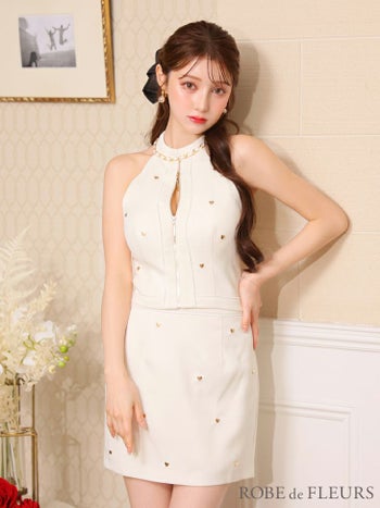 キャバドレス ROBEdeFLEURS ローブドフルール セットアップ ジップデザイン チェーン ガーリー ハートスタッズ ホルターネック タイトミニドレス