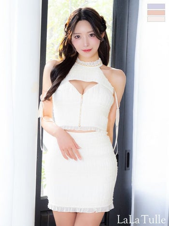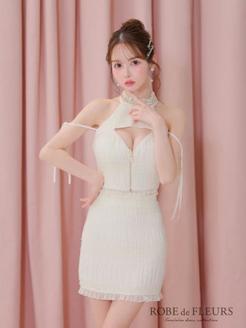 キャバドレス ROBEdeFLEURS ローブドフルール シャーリングシフォン リボン ジップデザイン バストカット ホルターネック セットアップ ガーリー タイトミニドレス