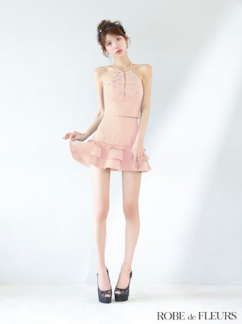 キャバドレス ROBEdeFLEURS ローブドフルール セットアップ ジップデザイン ホルターネック ビジュー フレアミニドレス