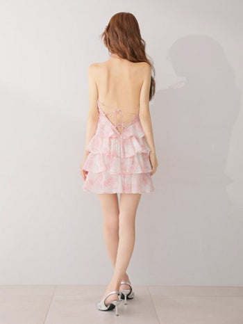 XSあり!バックスタイルまでこだわった一着♡ 【ROBEdeFLEURS/ローブドフルール】花柄プリント シフォン ホルターネック ティアード フレアミニドレス(fm4502)
