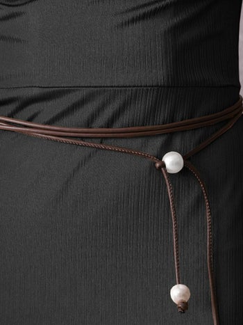 4. 【Veautt/ヴュート】 ウエストベルト アシンメトリー ドレープネック ホルターネック パール セクシー 膝丈ドレス (VT022528)
