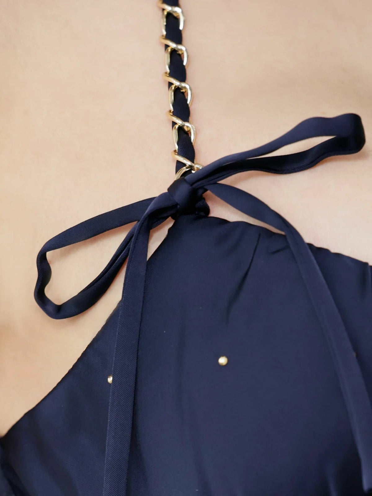 他の画像を見る XSあり!高級感抜群のデザイン♪ 【Veautt/ヴュート】ホルターネック ギャザー ウエストクロス ビジュー エレガント チェーンモチーフ 膝丈ドレス (VT082518) ¥ 31,680 税込 詳細を見る お気に入りに登録する