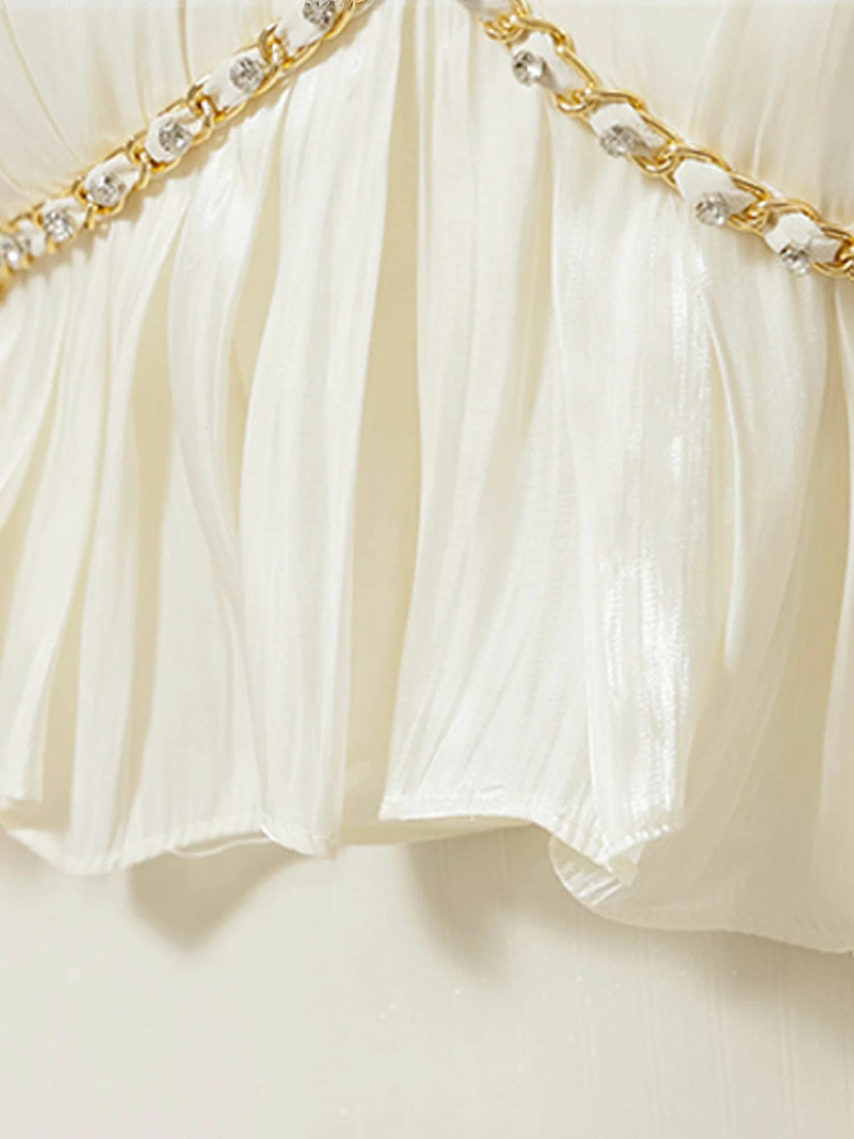 他の画像を見る XSあり!チェーンモチーフがアクセントをプラス♪ 【Veautt/ヴュート】ギャザー ウエストクロス ビジュー エレガント チェーンモチーフ ホルターネック 膝丈ドレス (VT082518) ¥ 31,680 税込 詳細を見る お気に入りに登録する