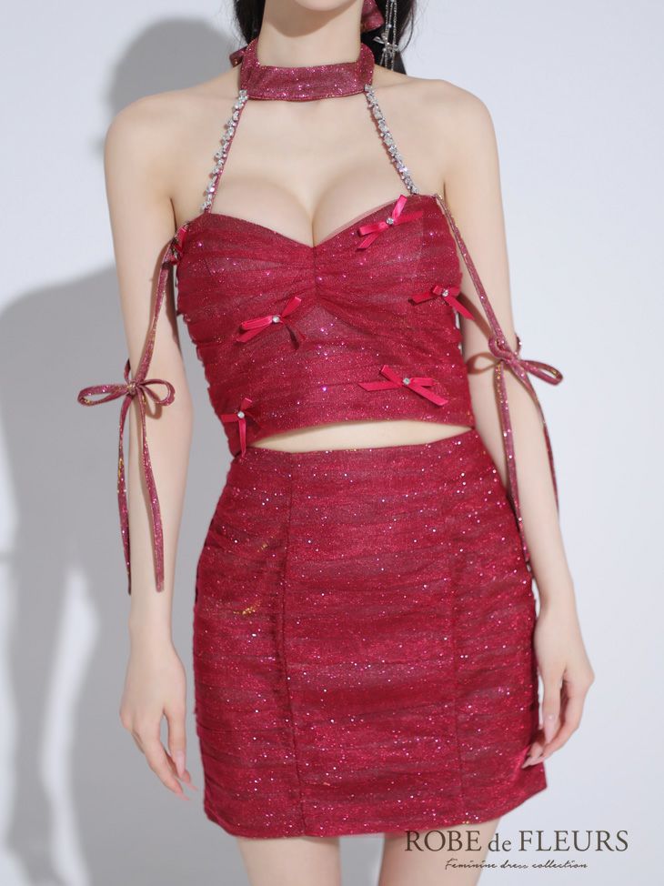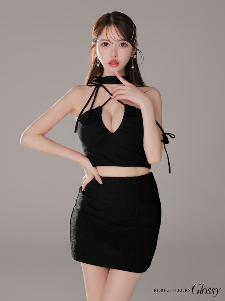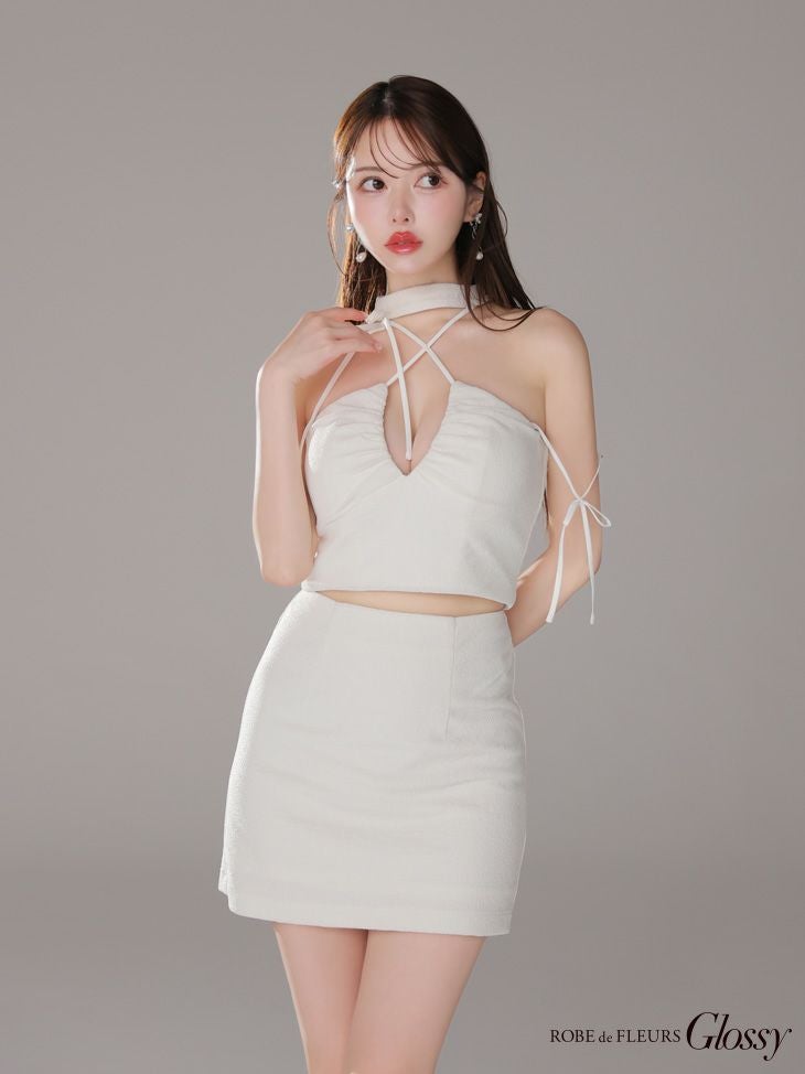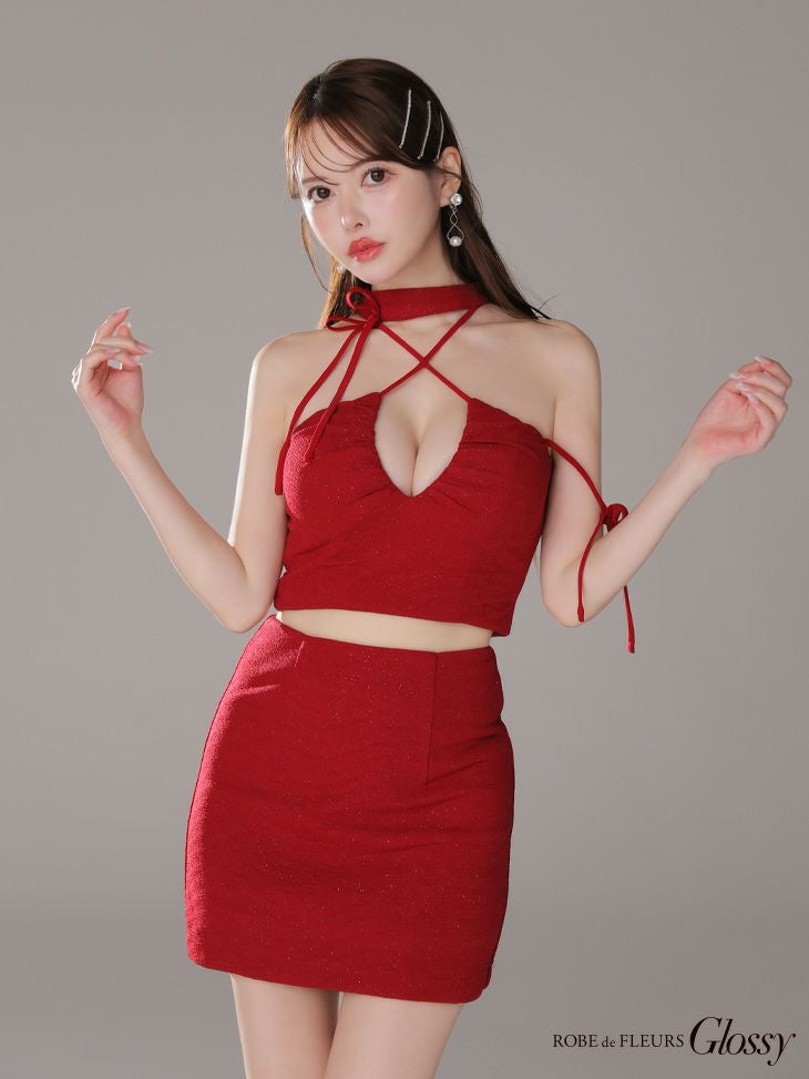他の画像を見る XSあり!胸元がセクシー☆ 【Glossy by ROBE de FLEURS/グロッシー】アシンメトリー リボン セットアップ セクシー オープンバスト ホルターネック タイトミニドレス (GL3438) ¥ 29,480 税込 詳細を見る お気に入りに登録する